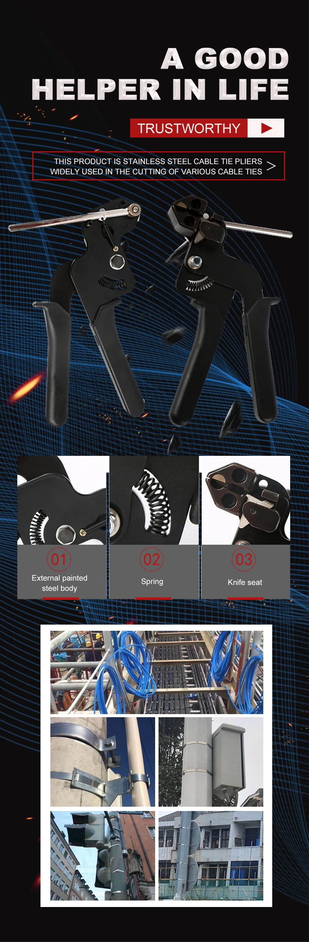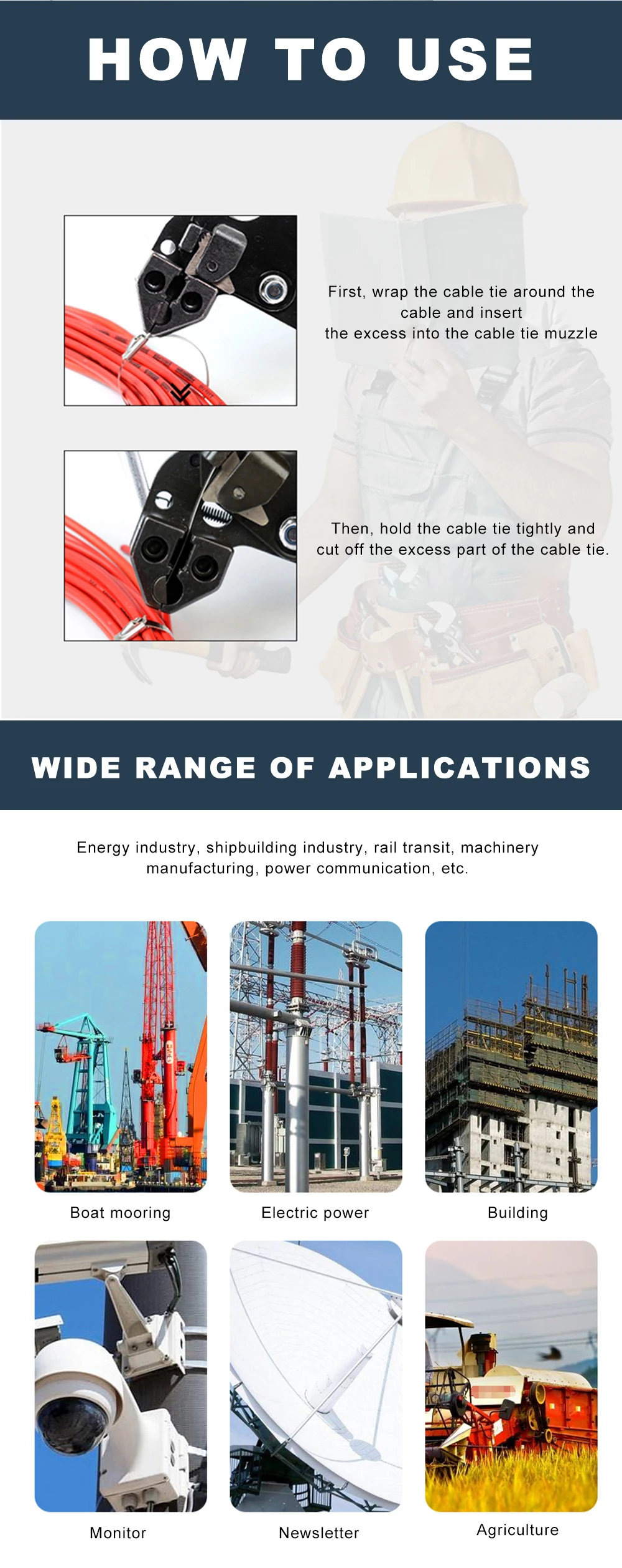 1. The self-locking cable ties can be installed by hand or with a tensioning tool, and it's recommended to wear gloves so as to protect your hands.