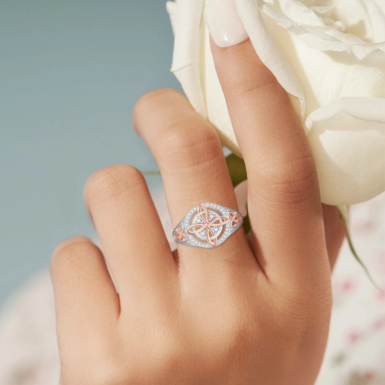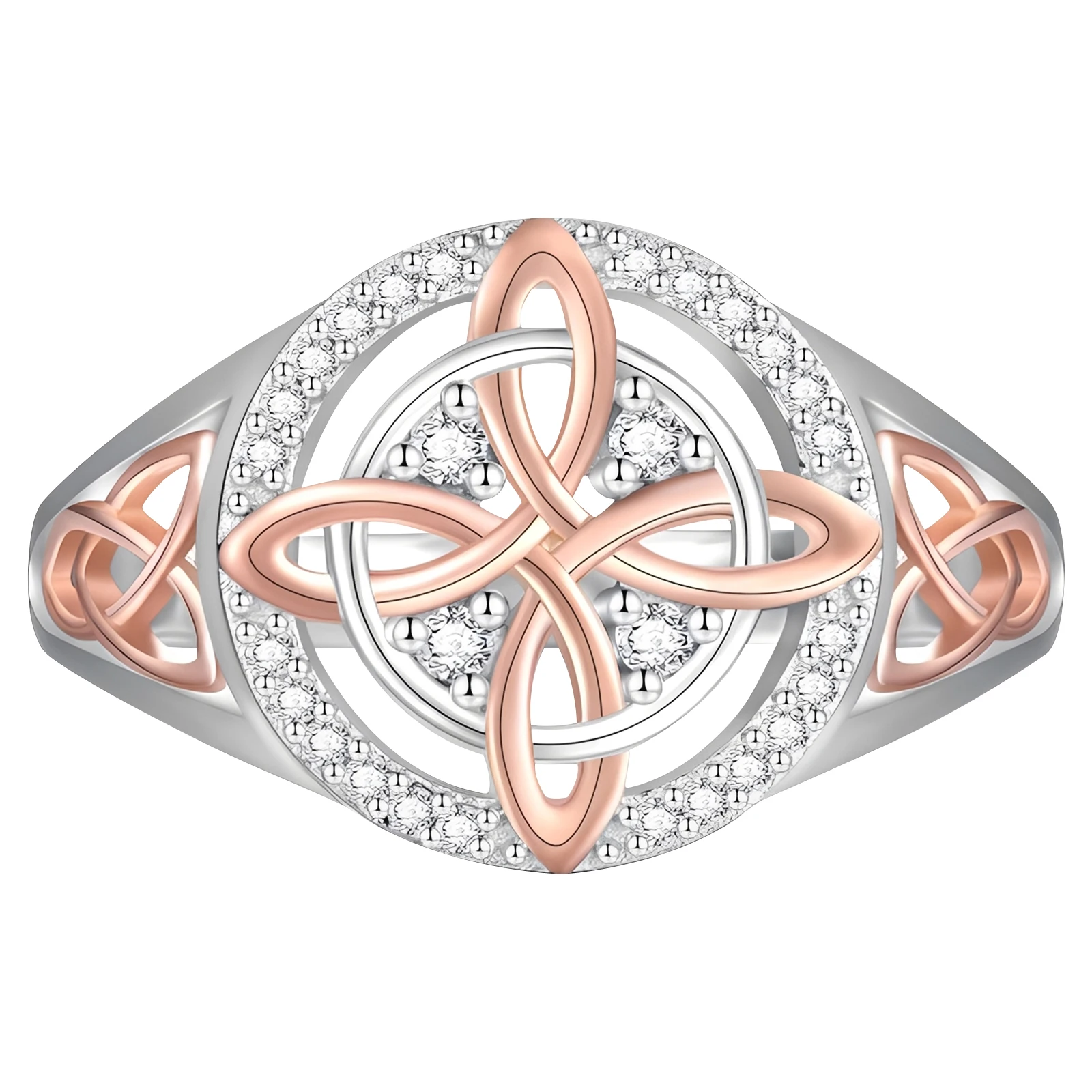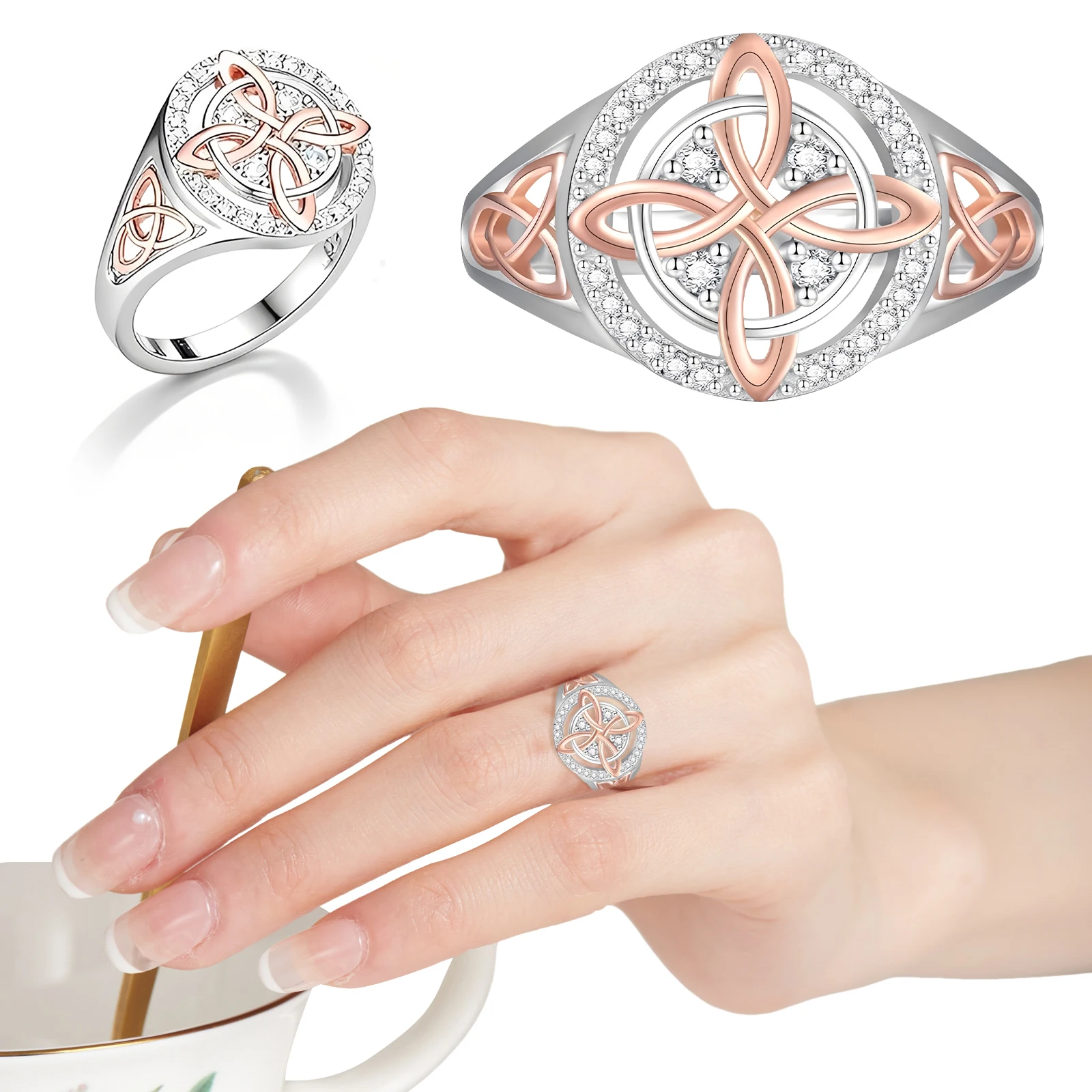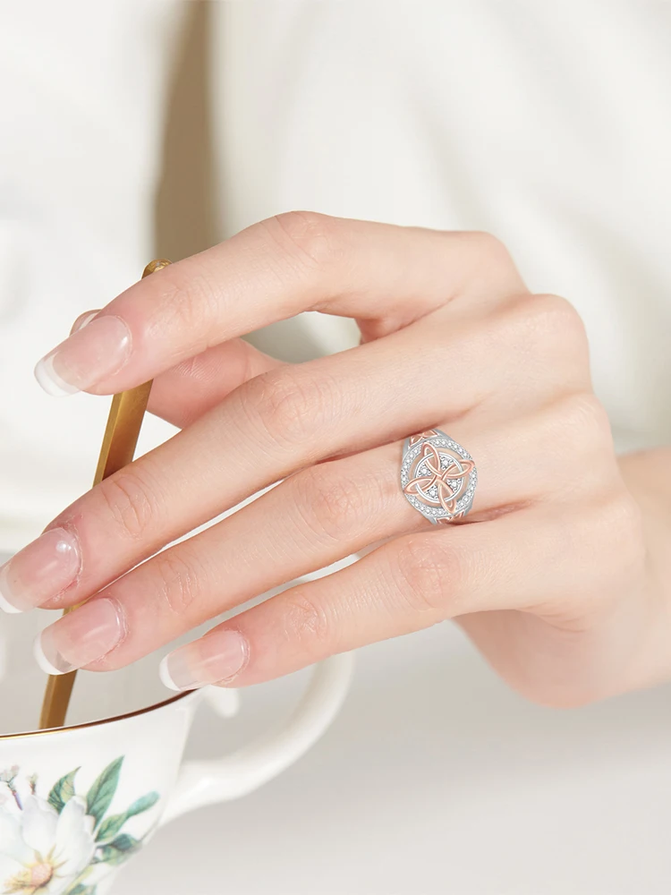 Bicolor Witch Return-Knot Protection Ring Protect Your Loved Ones Witchcraft Knot Ring Jewelry for Women Birthday Gift Mothers Day Gifts Features: 1.Unique Dual-Tone Cubic Zirconia Design: This witches knot ring features a striking blend of dual-tone cubic zirconia and dual-color alloy materials, offering a layered look that elevates any outfit. Suitable for daily wear or mixing with different styles, it instantly enhances your aura. 2.Brilliant Shine, Sophisticated Appeal: Meticulously polished cubic zirconia stones make this celtic knot ring sparkle with a luxurious sheen. Instantly add glamour to your fingertips and showcase sophisticated taste every time you wear it. 3.Comfortable alloy Build: Crafted from smooth alloy, the witch return-knot protection ring feels gentle on the skin and fits comfortably on your finger, ensuring easy all-day wear for any occasion. 4.Exquisite Inlay Craftsmanship: The intricate setting joins cubic zirconia with alloy through fine craftsmanship, guaranteeing refined details and capturing the essence of a truly elegant accessory. 5.Standout Niche Style: Unlike common rings, this witchcraft knot ring boasts a unique, dual-tone design suitable for those who love individuality, letting you stand out as the center of attention.