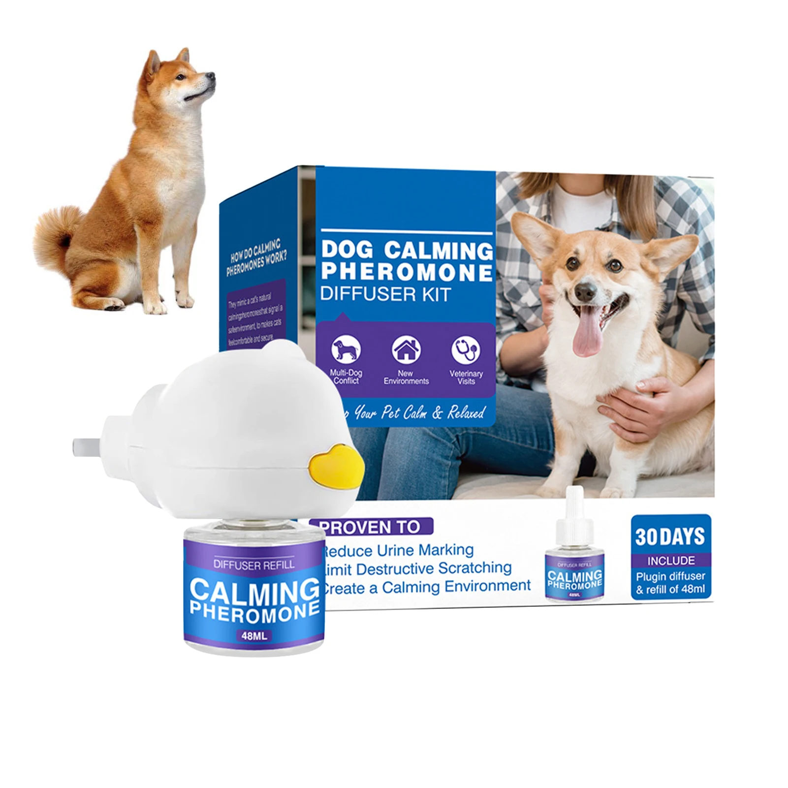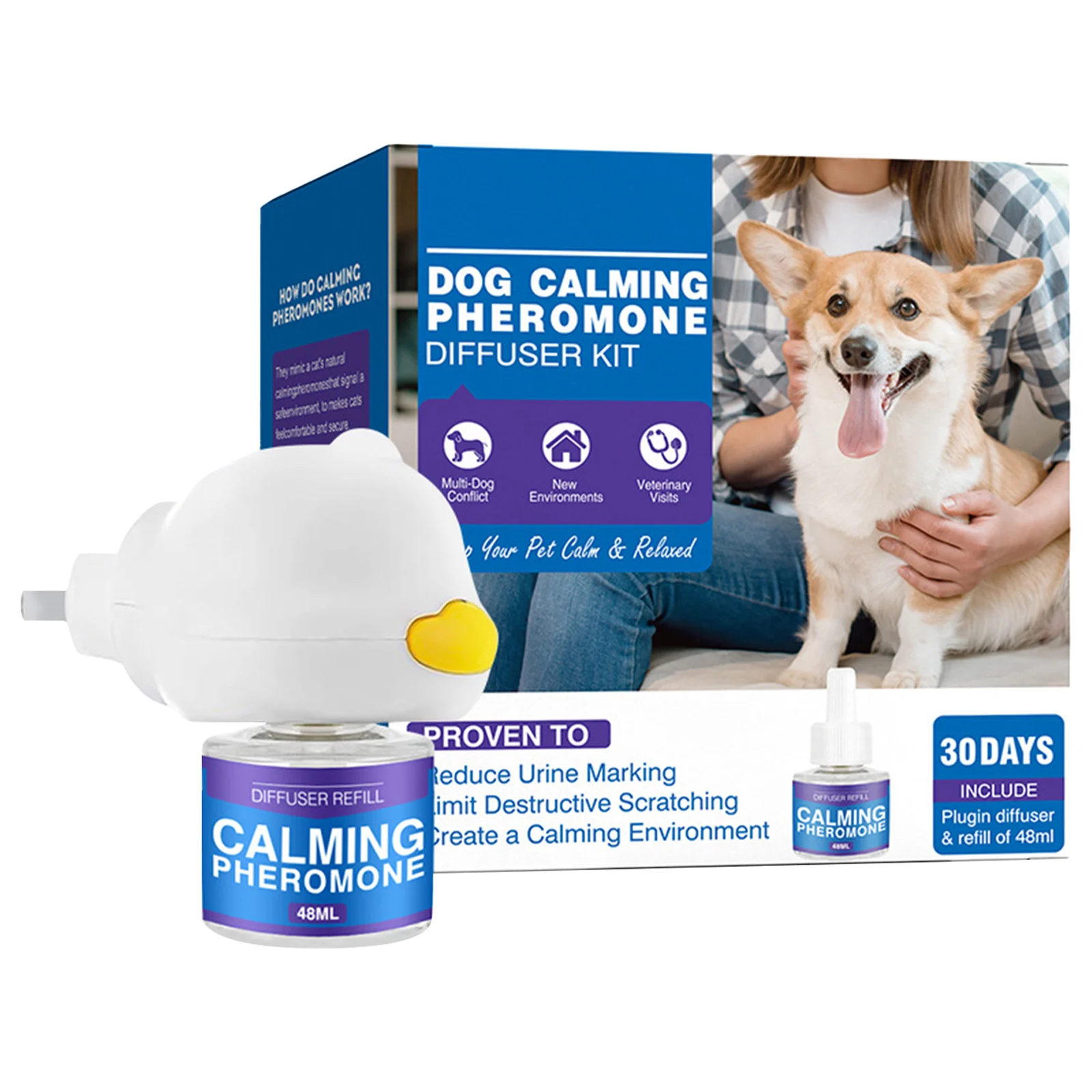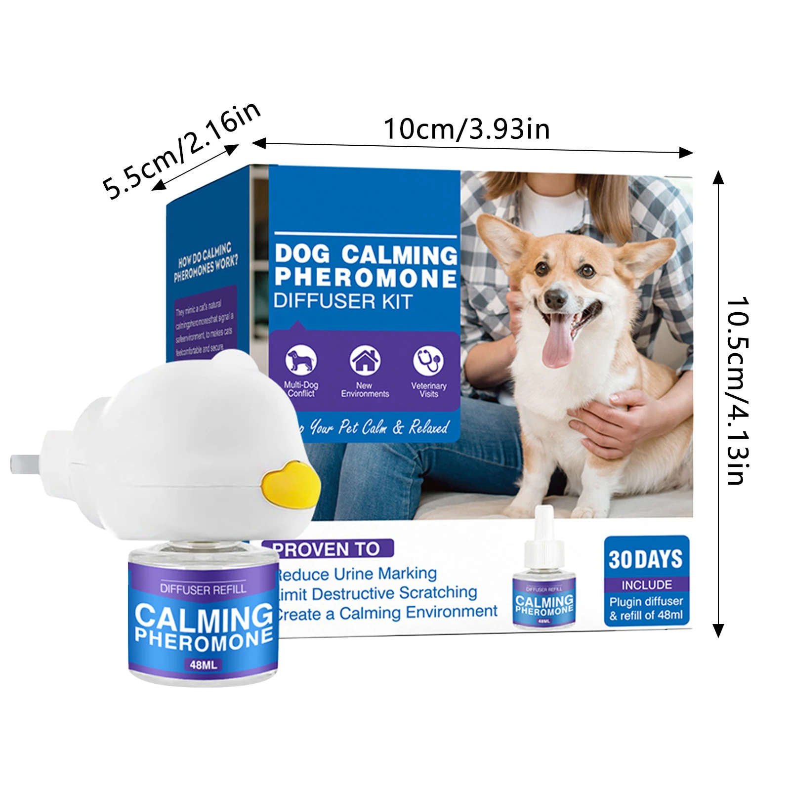 Safe and Convenient: This 48ml cat/dog calming diffuser is safe for use around pets and is easy to use, simply plug in to create a calming environment for your furry friend.