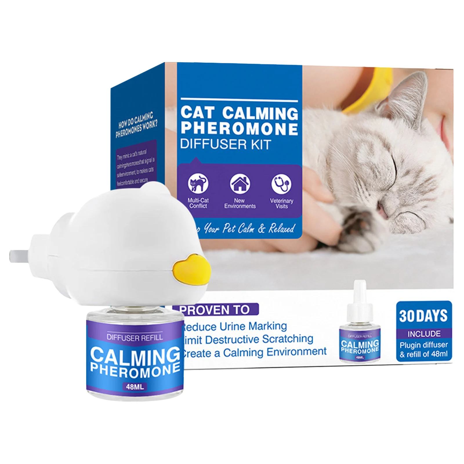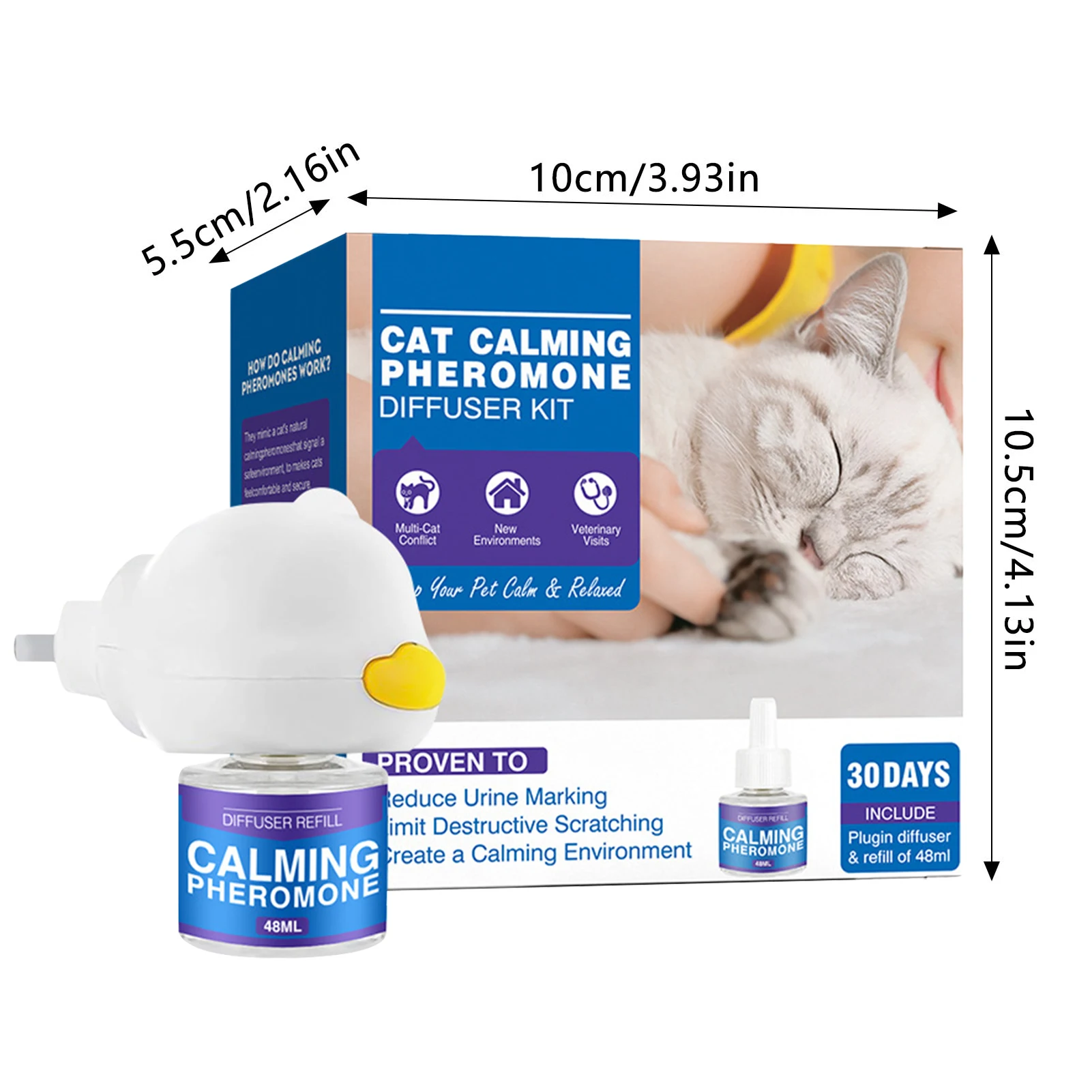 Long-Lasting Effect: The calming effects of our diffuser last for an extended period, providing continuous support for your cat's emotional needs and promoting a sense of security.