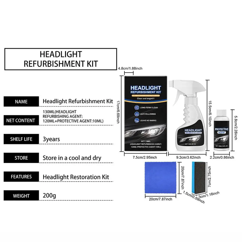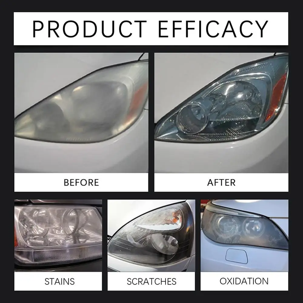 Long-lasting protection: The repair fluid can not only remove defects, but also form a protective layer to prevent ultraviolet rays, dust and dirt from erosion, extending the service life of the headlights.