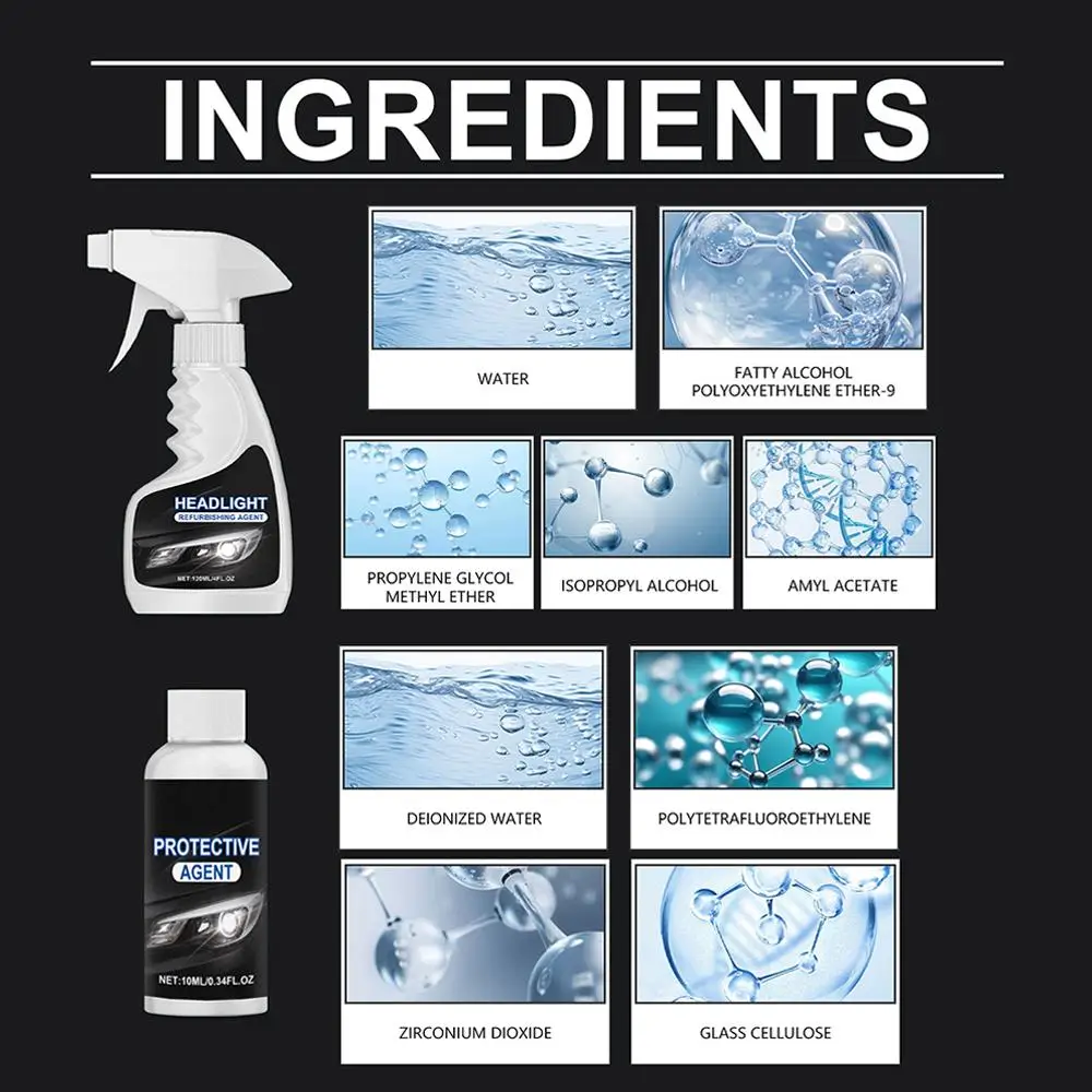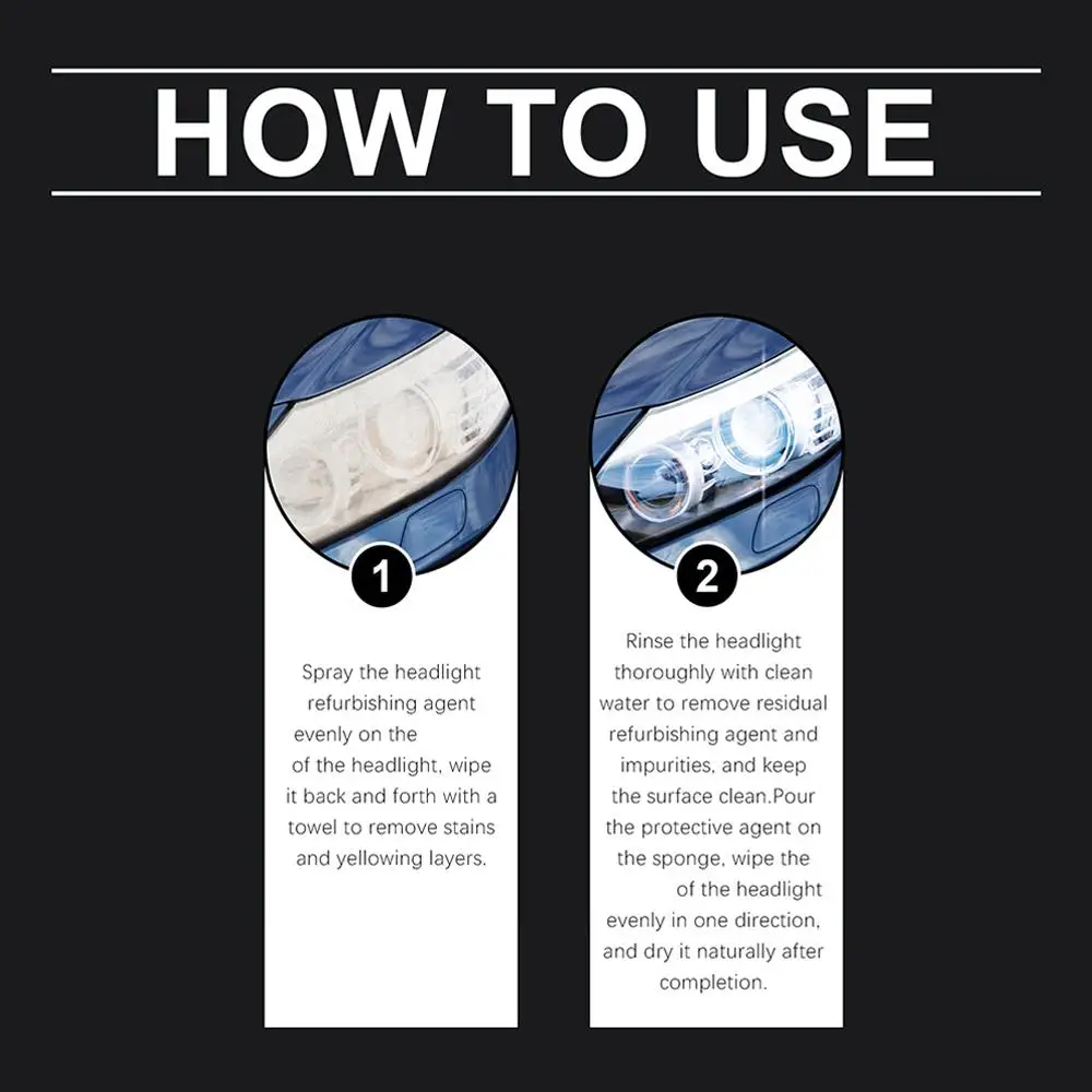 Environmentally friendly and safe: It adopts an environmentally friendly formula, does not contain corrosive ingredients, is harmless to the of the headlights and the human body, and is safe and reliable to use.
