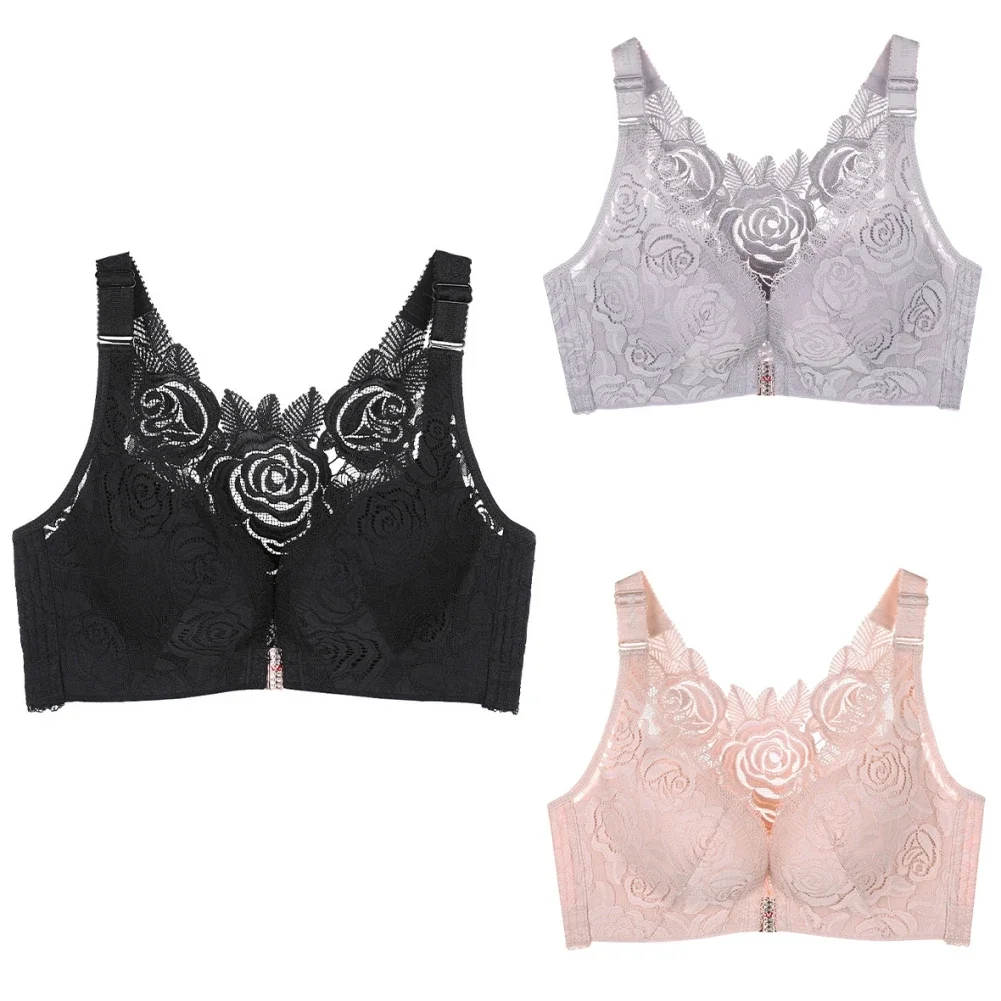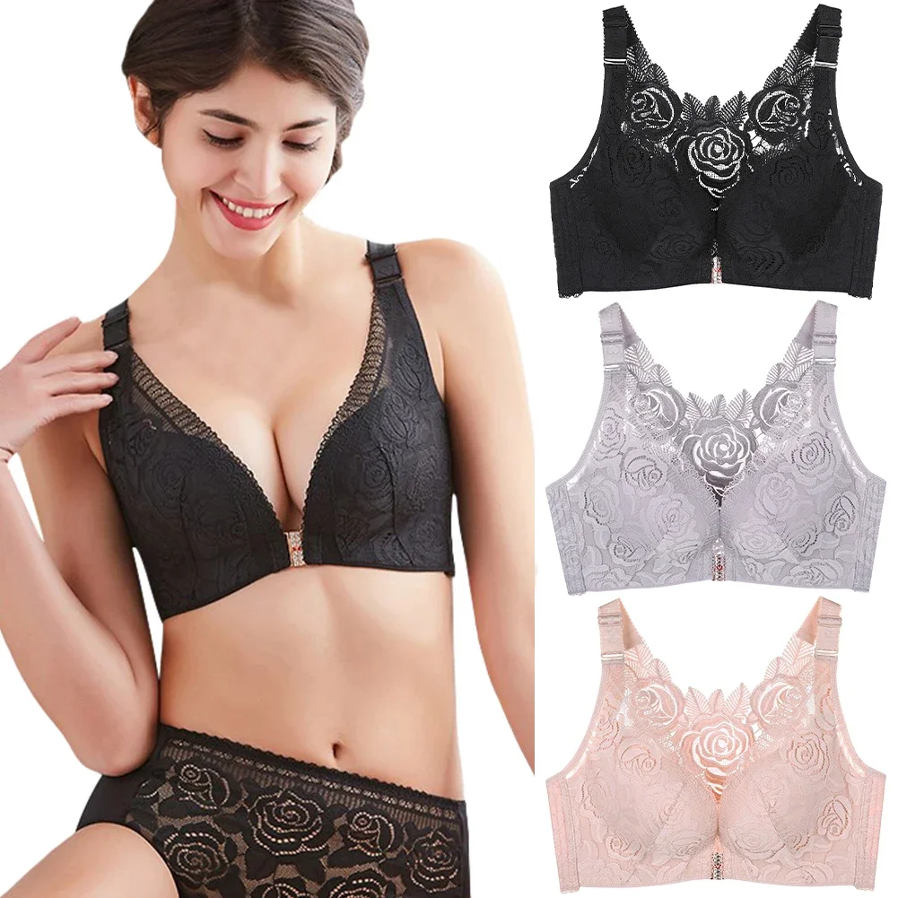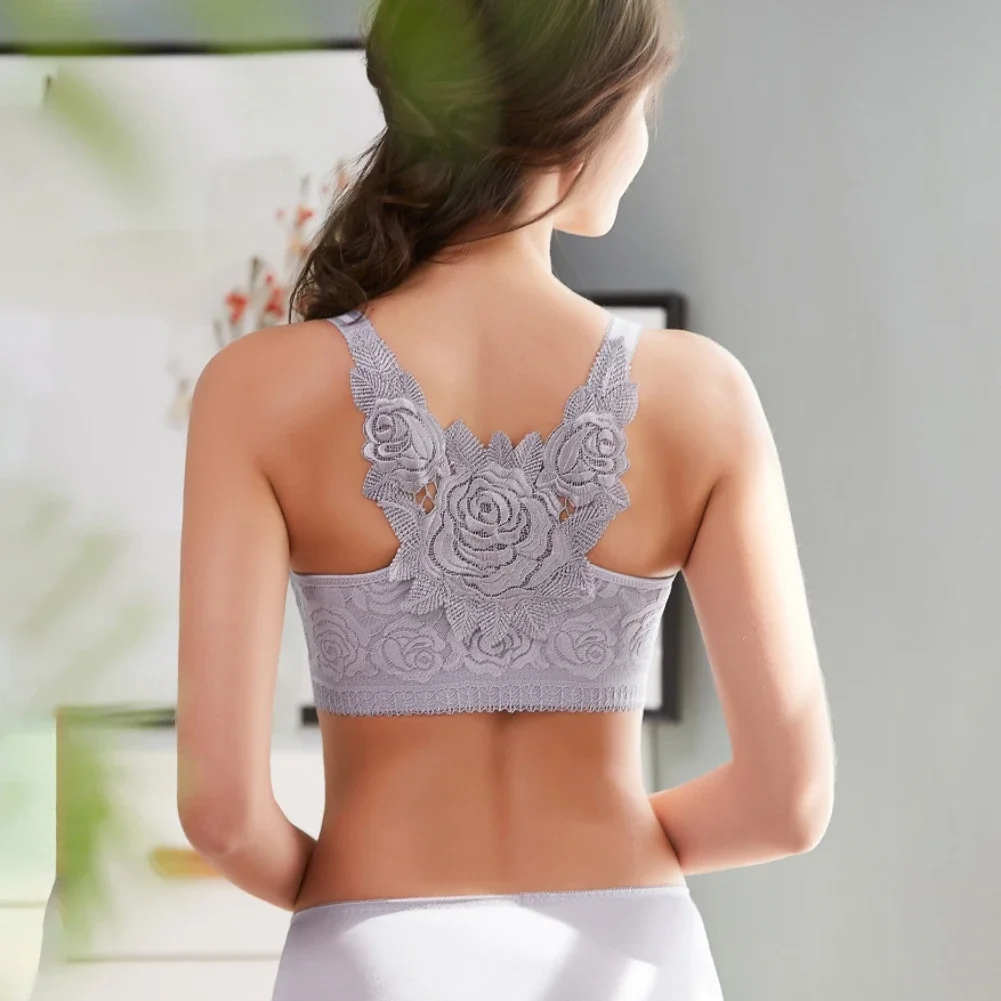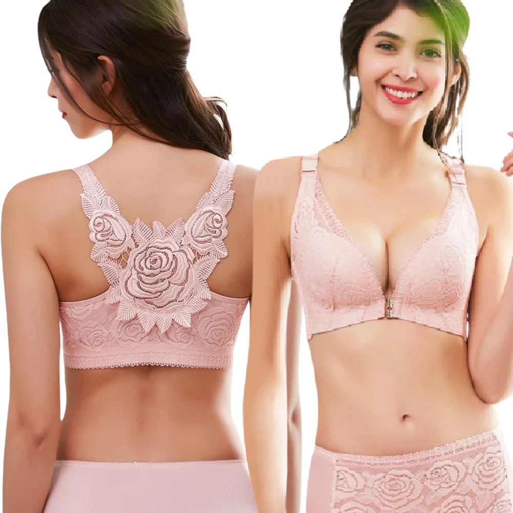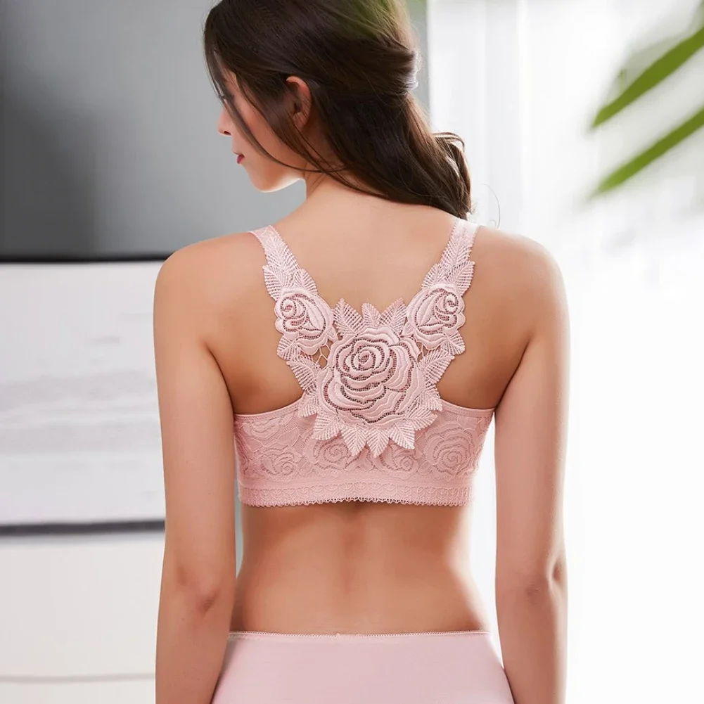 THIS IS A DISCOUNT FOR YOU = Rose Embroidery Front Closure Wirefree Bra Front Button Bra Beautiful Back Sexy Underwear Push Up Bra TTop Plus Size Intimates