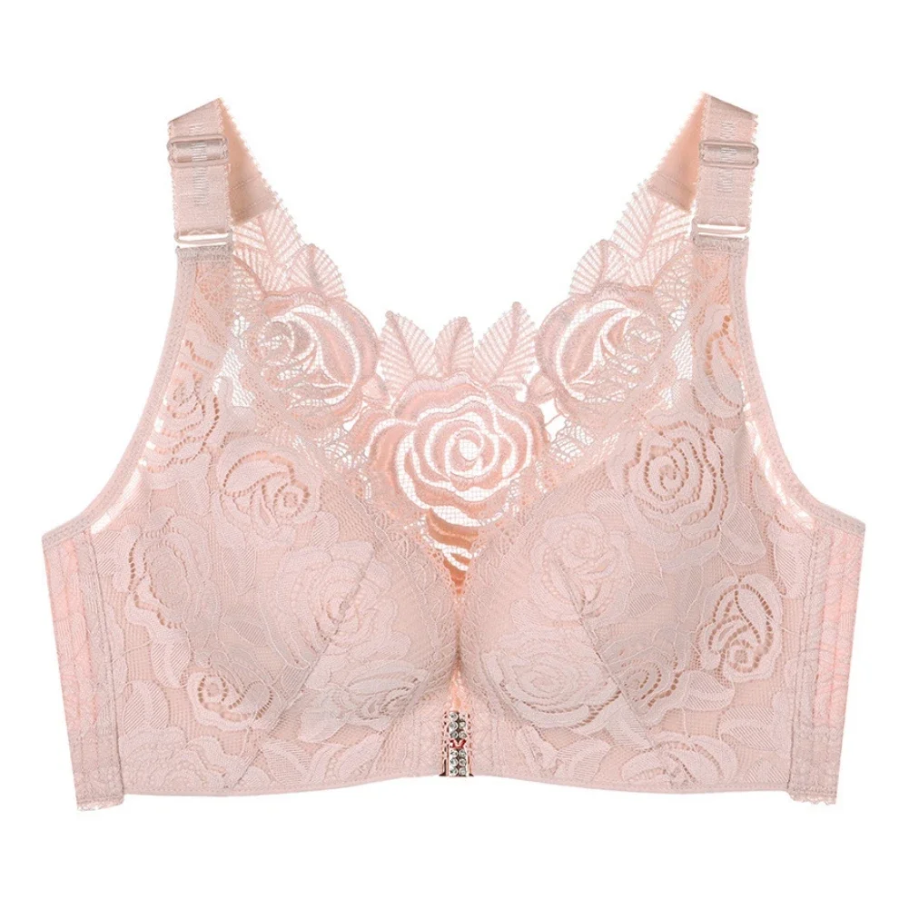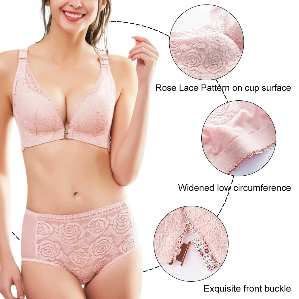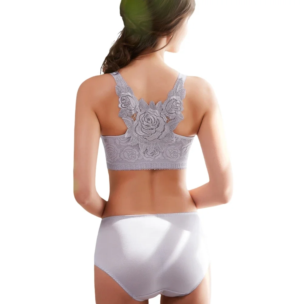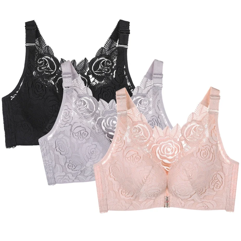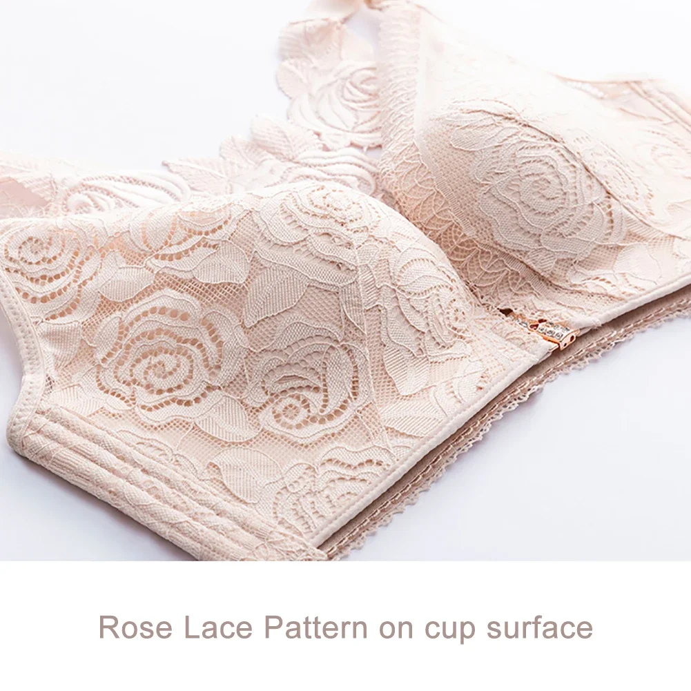 THIS IS A DISCOUNT FOR YOU = Rose Embroidery Front Closure Wirefree Bra Front Button Bra Beautiful Back Sexy Underwear Push Up Bra TTop Plus Size Intimates