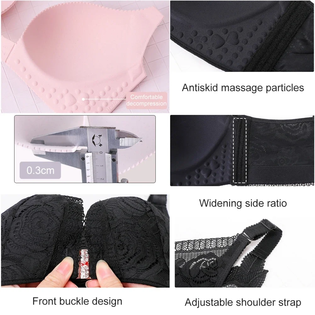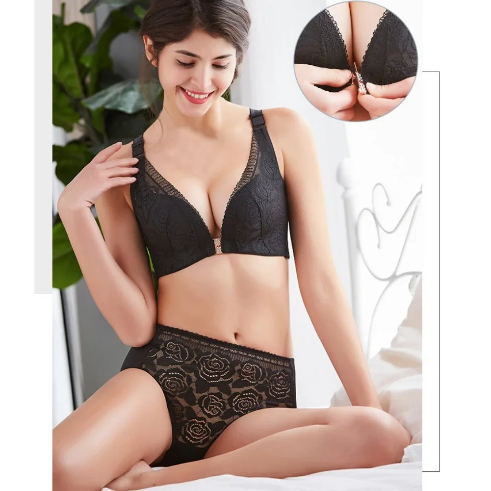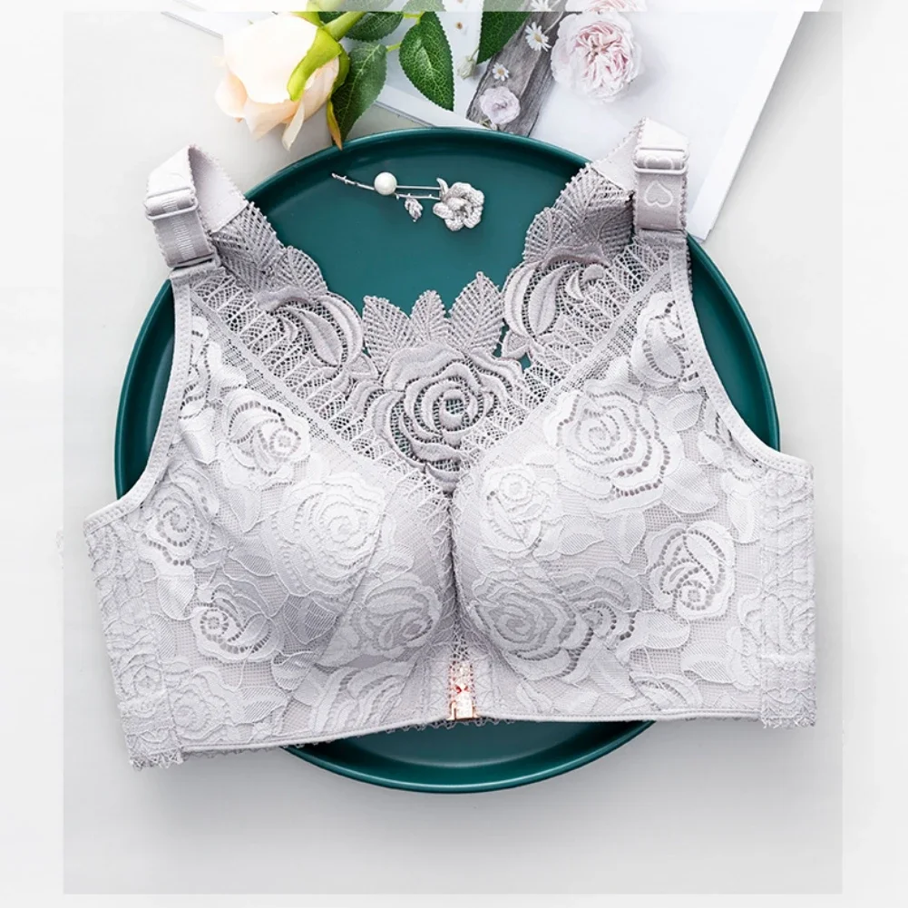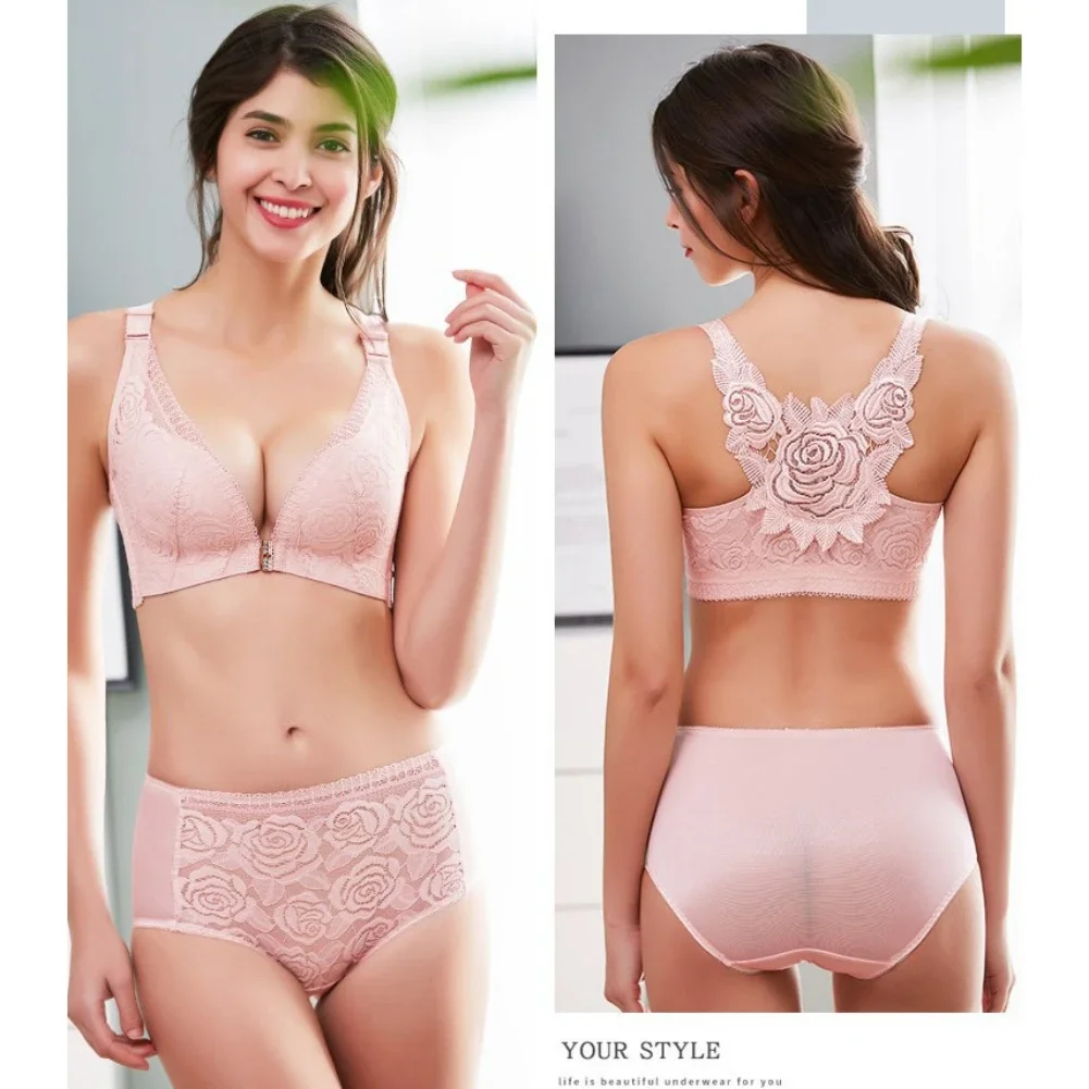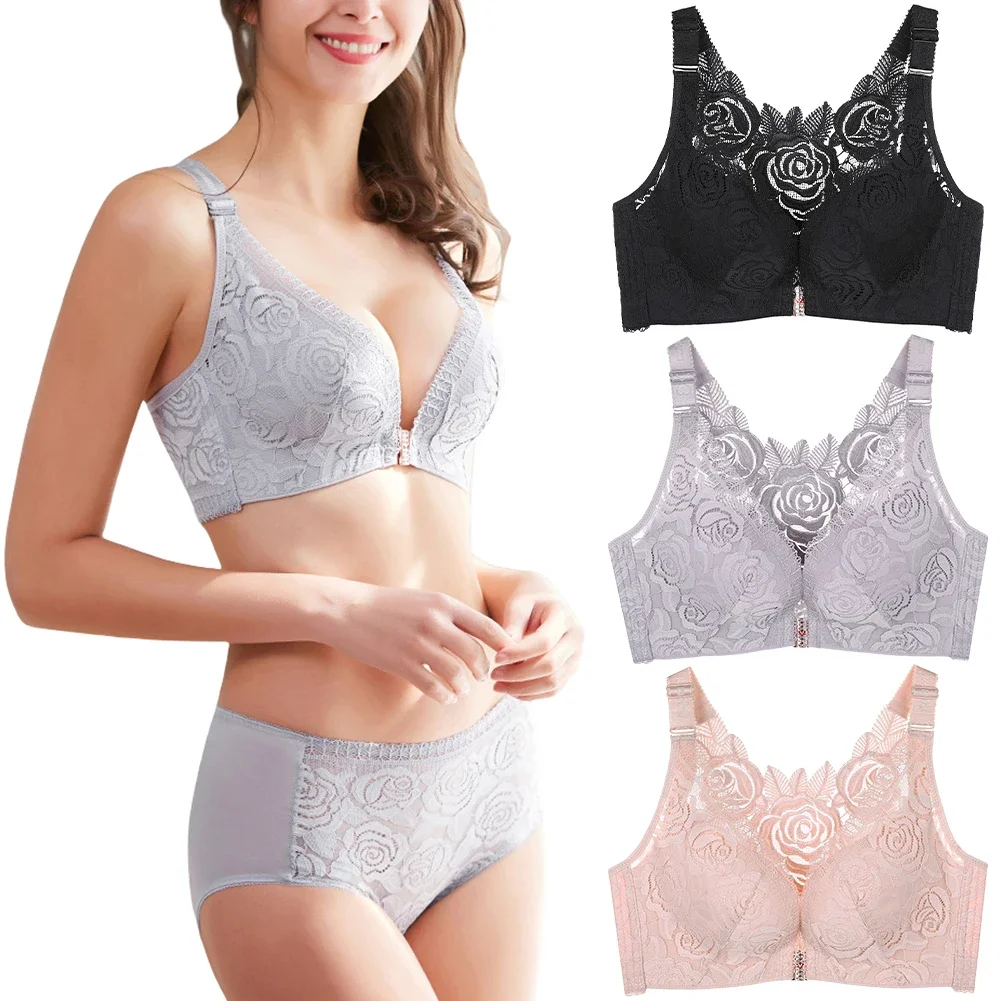 THIS IS A DISCOUNT FOR YOU = Rose Embroidery Front Closure Wirefree Bra Front Button Bra Beautiful Back Sexy Underwear Push Up Bra TTop Plus Size Intimates