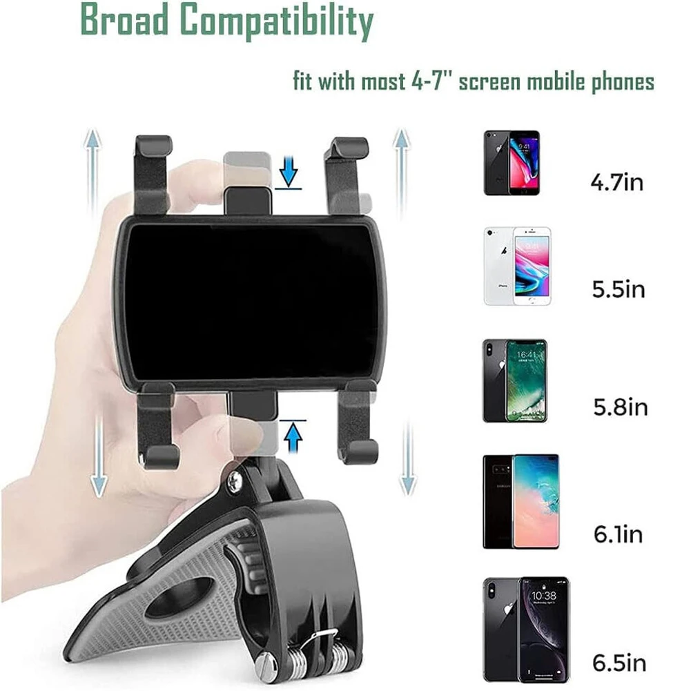 5. Secure and Adjustable: The dashboard adjustable spring clip cell phone holder ensures your phone is securely fastened with its spring clip mechanism. Its adjustable design accommodates various smartphone models, providing a reliable and adaptable solution for all your in-car phone holding needs.