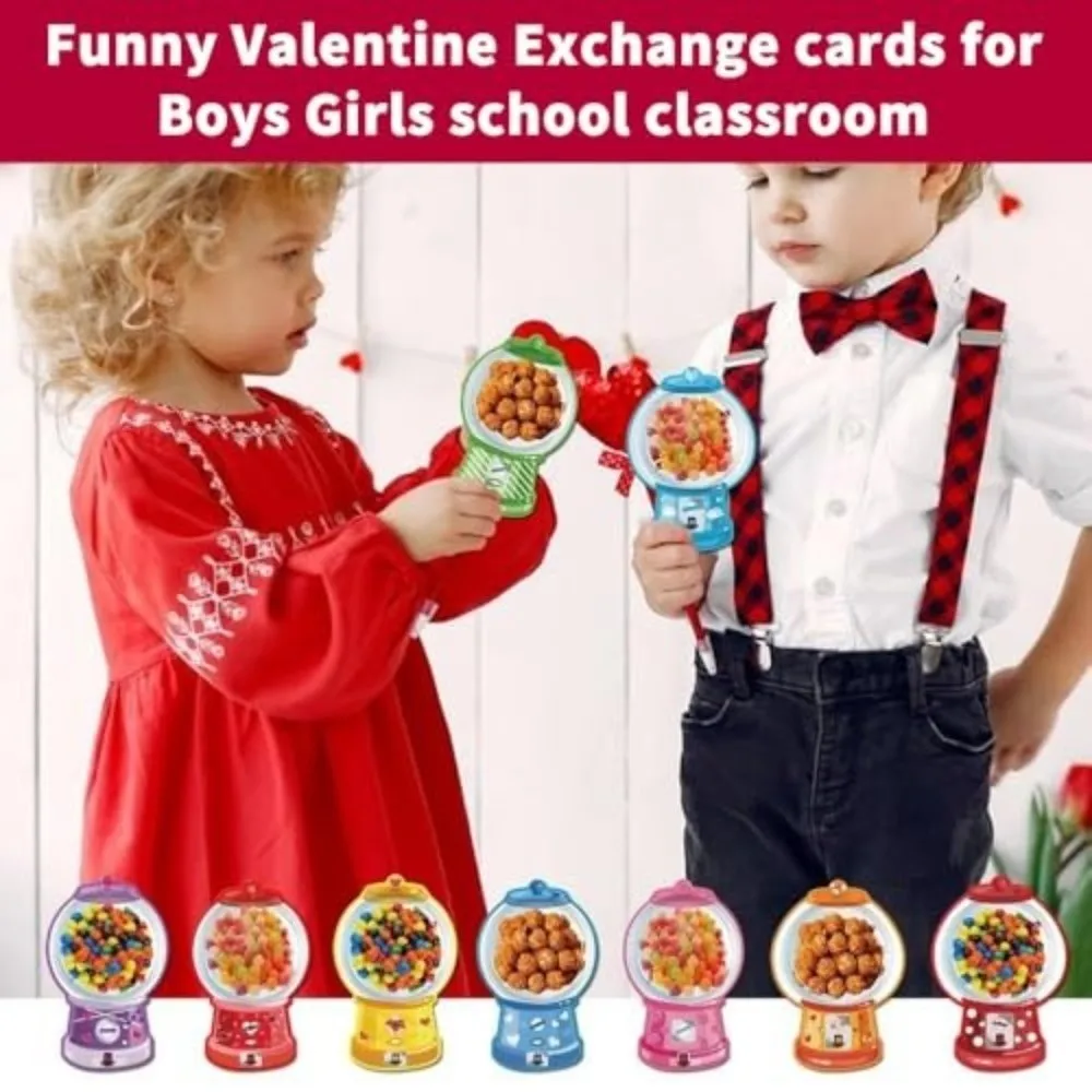 2.Fun Bubble Gum Machine Theme Design: This Valentine's Day candy card gift box features a fun bubble gum machine theme, adding charm and creativity to Valentine's Day gift exchanges.